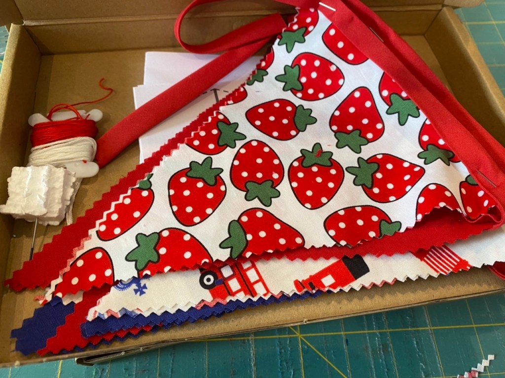 Young Stitchers – Kits have gone out to some of our Young Stitchers to make bunting (what else would it be?!) Looking forward to meeting them online tomorrow morning and seeing their results. They always add their own personality to the projects. 🙂