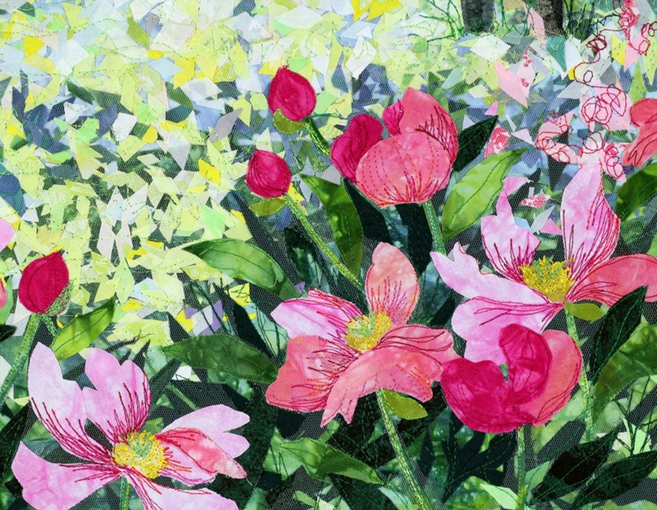 This workshop will work on a unique hand-dyed piece of fabric (provided). We build up a garden/hedgerow inspired piece in layers, starting with plant stencils, wooden stamps and then collaged shapes. Finally, we add stitching by machine or hand.