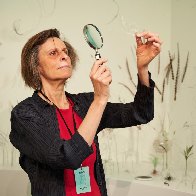 From textiles to fly-tying and cat whiskers to millinery, her artworks and sculptures grow from the creative compost of her making life and demonstrate how techniques and materials transform when they combine and cross-pollinate.