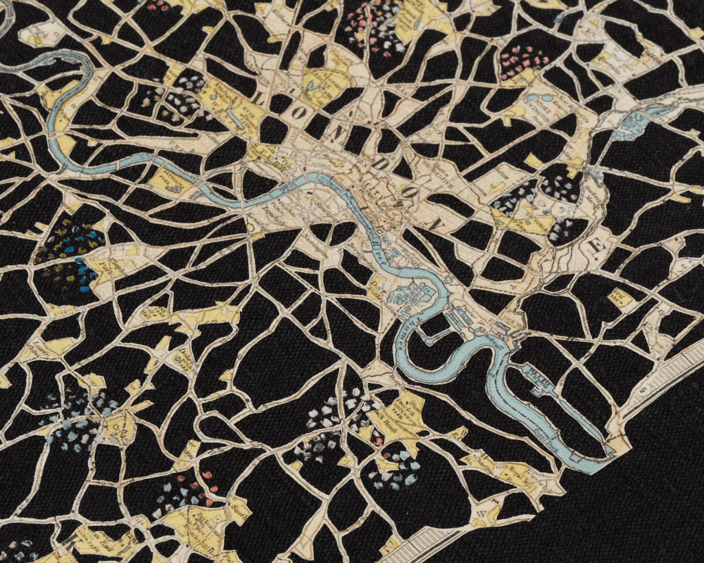 British artist Richard McVetis’ installations, drawings, and embroideries span the congruity of macro and micro, often monochromatic and labour-intensive. His meticulously stitched multiples of dots, lines, and crosses record time and map space.