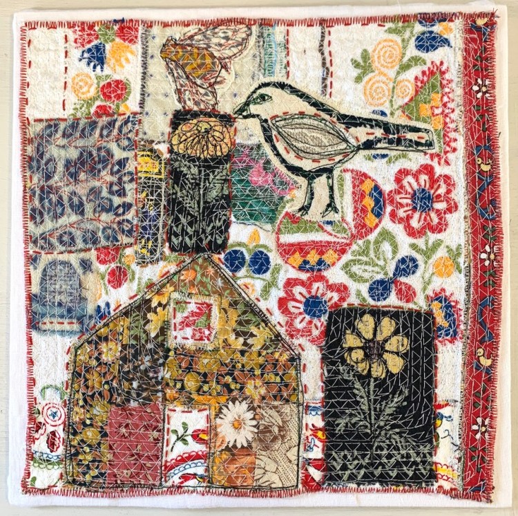 Floral and vintage fabrics enhance and give depth to many projects. Students will look through their collections for pieces to appliqué onto a square sample.